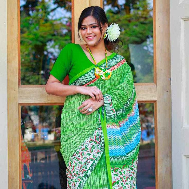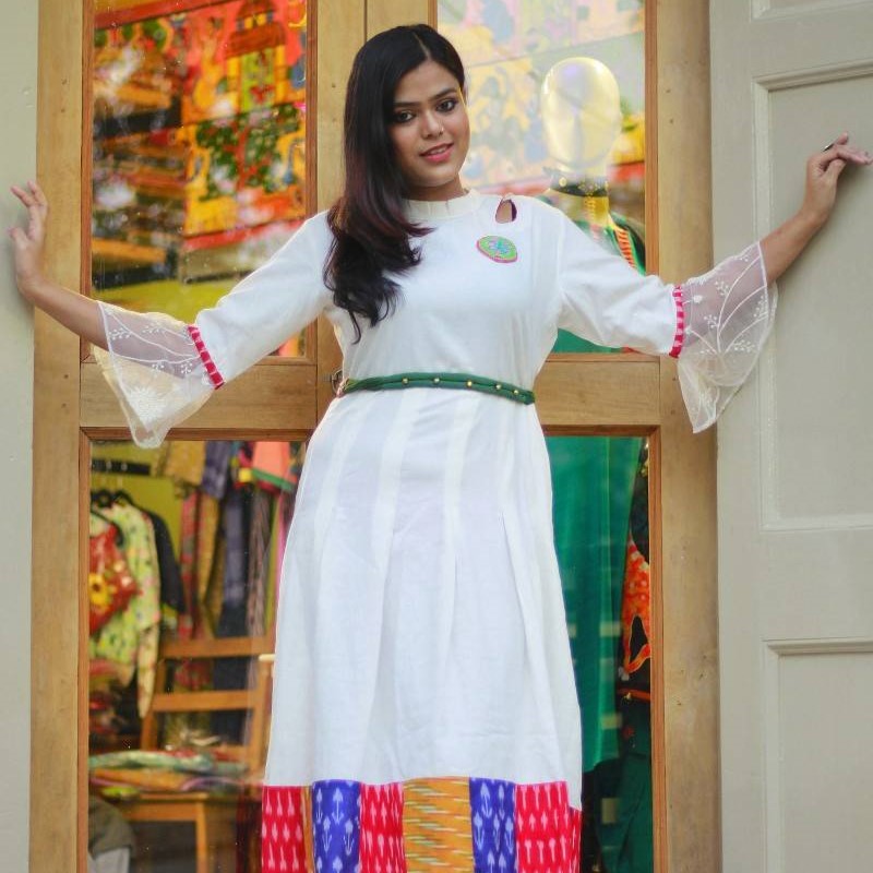 Description: Red pure cotton wrapper with yellow "Kantha" stitch work.