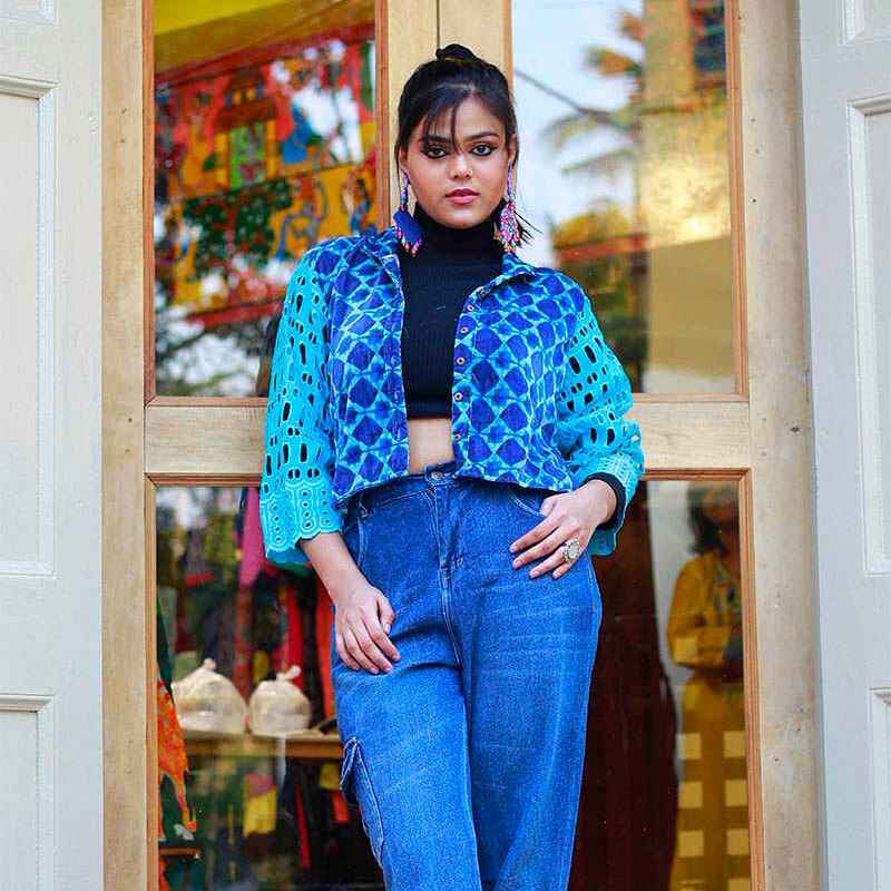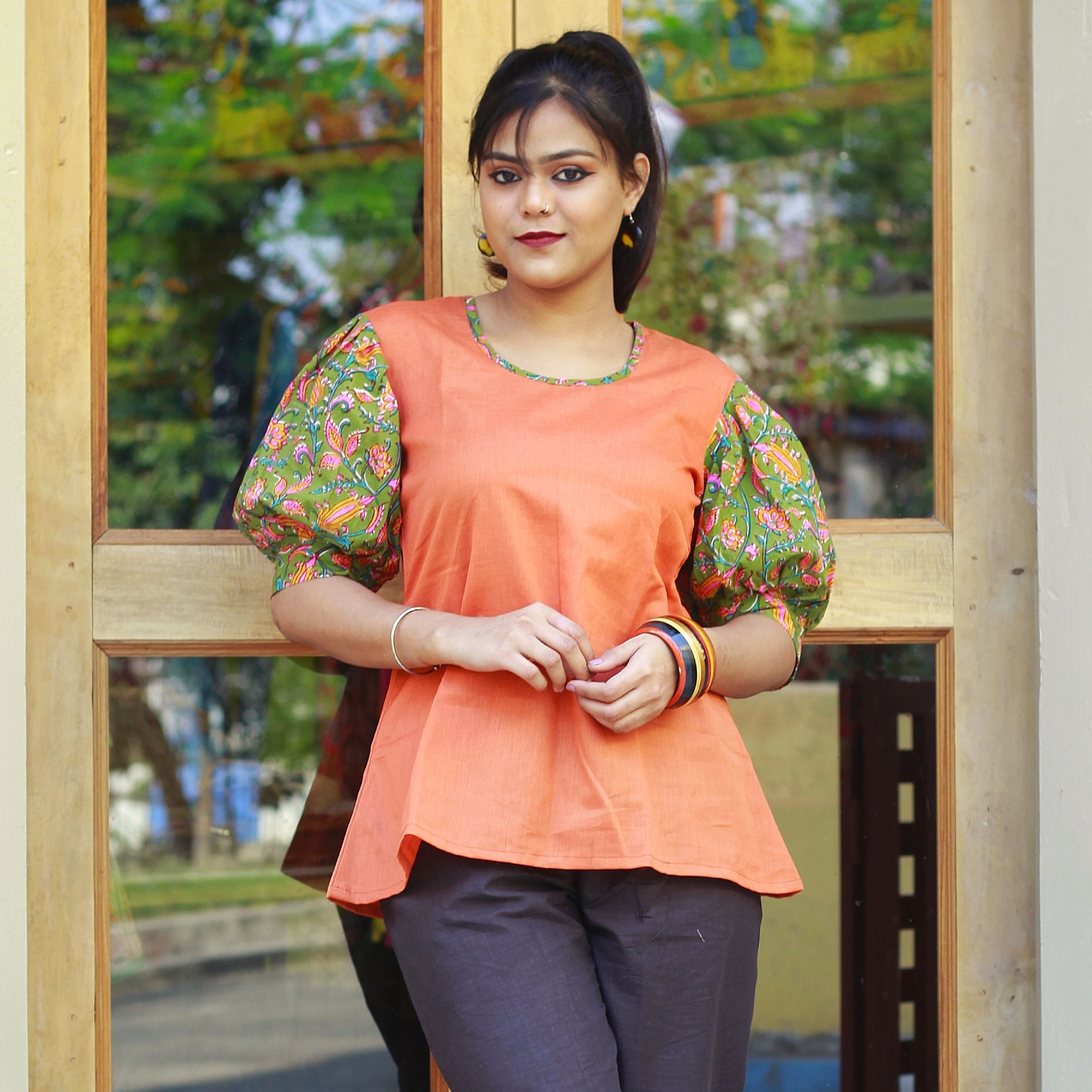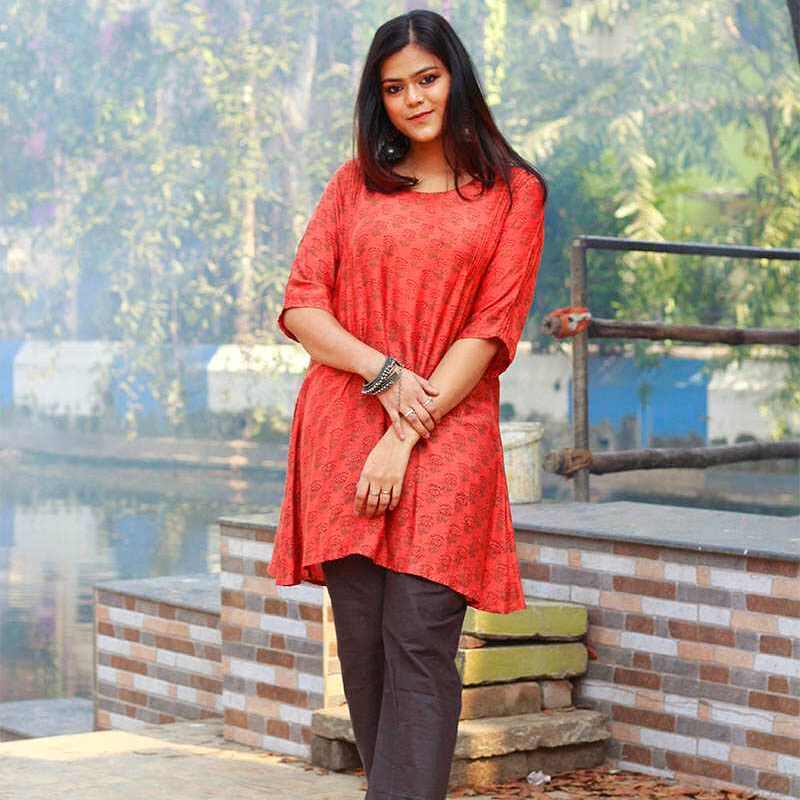 Red pure cotton wrapper with yellow "Kantha" stitch work. Read more